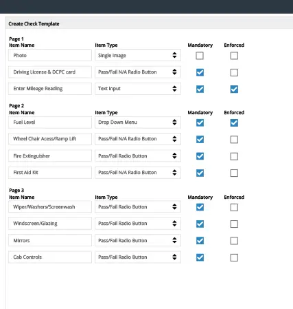 Checkedsafe has several recommended checklist’s however, all checks can be made bespoke. In fact, a checklist can be created for any vehicle or piece of equipment.